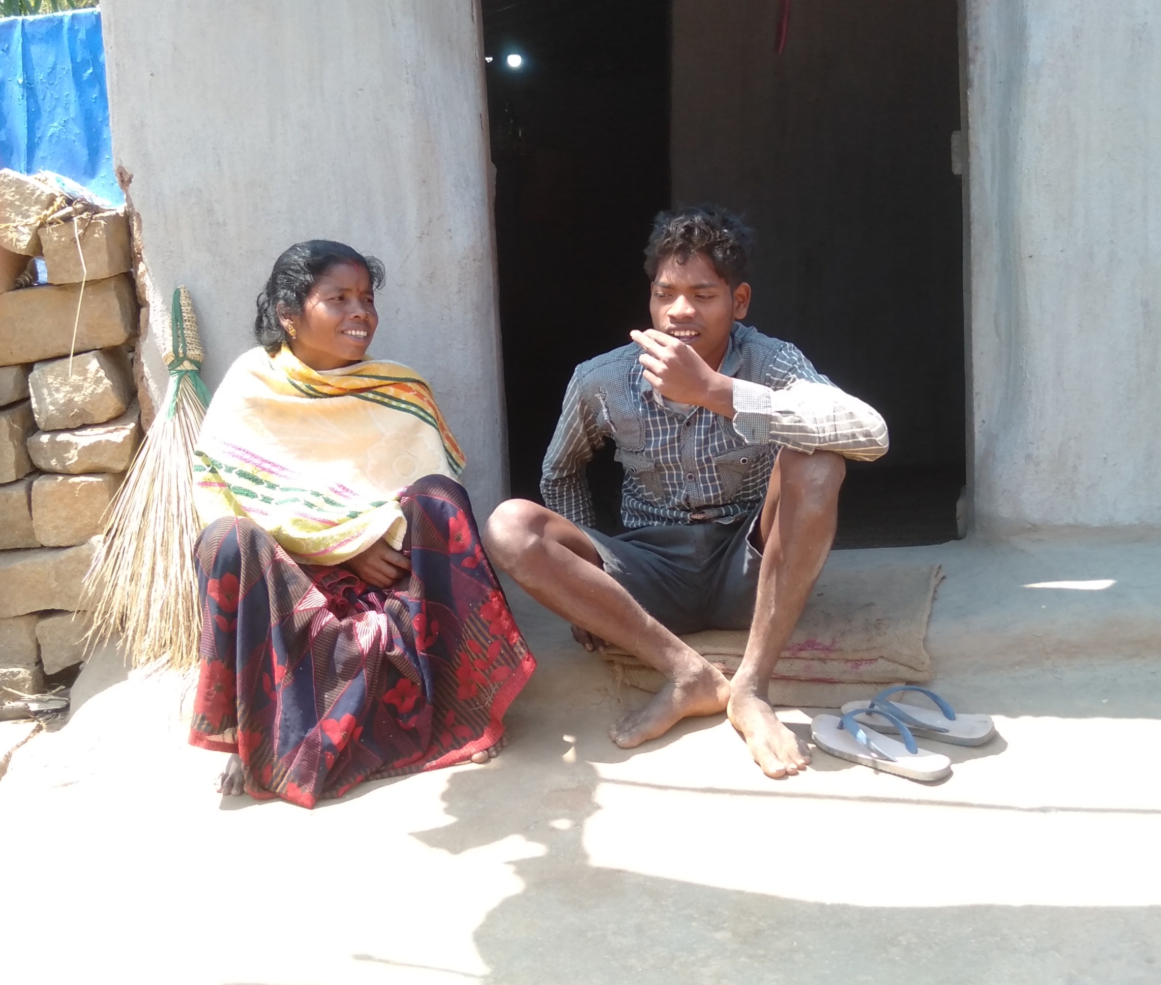 Basanti with her son outside her house in Karra Block. This particular block in Jharkhand is located in Chota Nagpur Plateau which is known for its extreme dry and hot weather conditions.