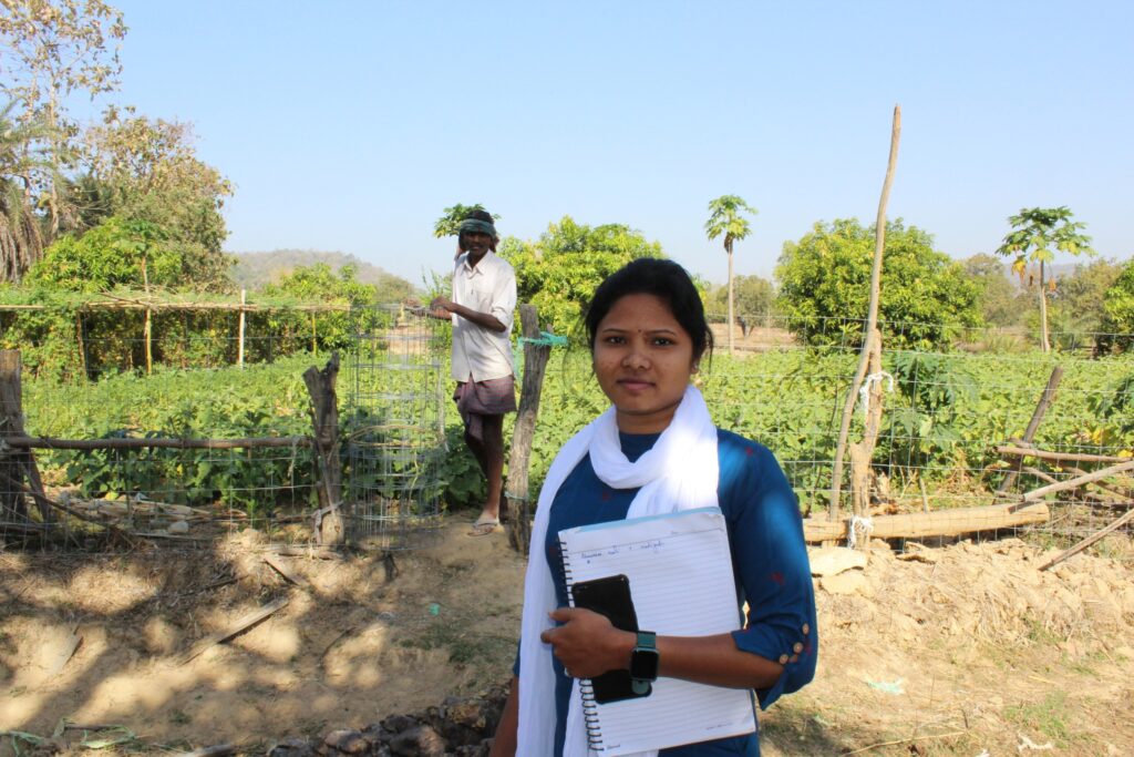 Sanjukta on a monitoring visit to a farmer | Photo Isha Banerjee